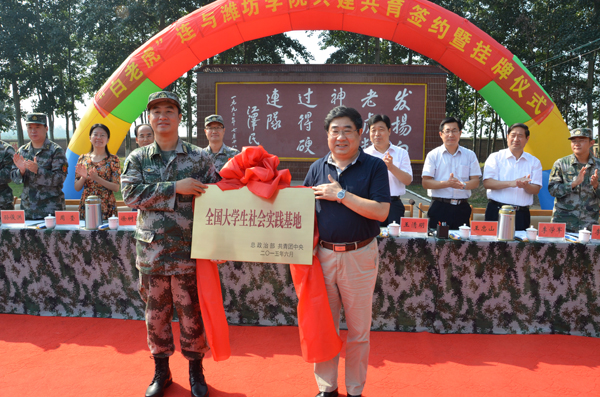 仪式上,孙文亮与马树江共同为“全国大学生社会实践基地”揭牌。双方共同签订了《关于建立社会主义核心价值观共建共育关系协议》。