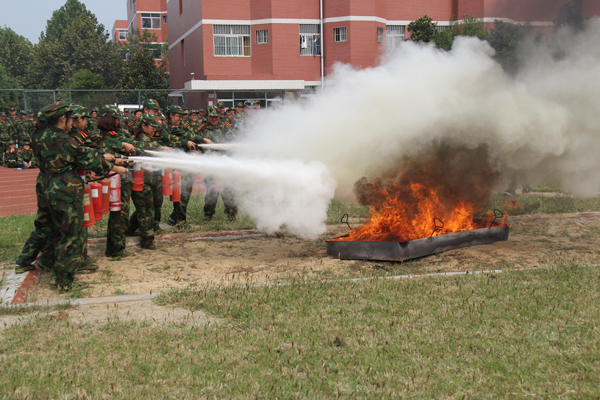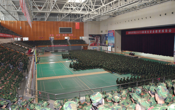 本站讯 9月21日,2015级新生安全教育报告会在学校体育馆举行。根据军训工作安排,学校邀请潍坊市公安局、高新区公安分局、高新区公安分局交警大队、潍坊市地震局、潍坊市消防支队的5位专家,分别对防邪教常识,防暴恐、防网络诈骗、防传销常识,交通安全常识,防震自救常识和消防安全常识进行了全面、生动的讲解。报告会后,在体育馆广场进行了新生灭火实战教学演习,为新生们上了一节难忘的安全课。