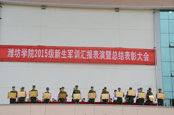 冯滨鲁在大会上作总结讲话,他说,同学们在军训过程中以军人的标准严格要求自己,敢于吃苦受累,勇于争取荣誉,善于团结协作,在训练场上挥洒了汗水和激情,磨练了意志和耐力,焕发了青春和活力,充分展现了新一代“潍院人”朝气蓬勃、顽强拼搏的闪亮风采。他希望同学们在今后的学习和生活中,能够继续深入地巩固、拓展军训成果,认真做到以下三点,一是始终坚持昂扬向上的奋斗热情。要进一步端正思想,明确任务,找准目标。二是牢固树立团结协作的集体主义观念。要进一步严格自律,涵养品质,增强自觉性和责任感。认真遵守学校的各项规章制度,学会自省,学会包容,加强沟通,增强合作,积极营造诚信友爱、互帮互助的良好风尚和乐于奉献、荣辱与共的融洽氛围。三是大力弘扬崇尚实干的时代精神。要进一步开阔视野,与时俱进,实事求是。进一步弘扬“和衷共济、艰苦奋斗、追求卓越”的潍院精神,认真践行“厚德、博学、求是、创新”的校训要求,为把我校建设成为省内同类高校一流、优势特色突出的综合性应用型大学做出应有的贡献!