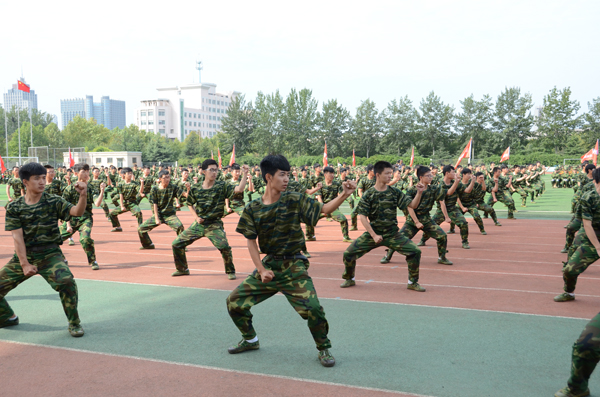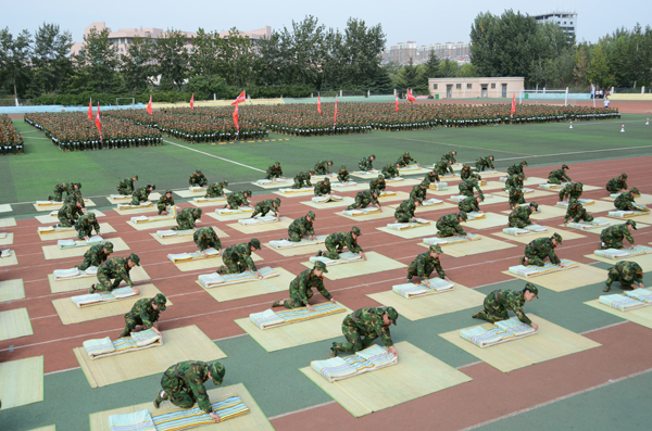 本站讯 9月29日,我校2015级新生军训汇报表演暨总结表彰大会在学校田径运动场举行。参加军训的6000余名新生以严明的纪律、过硬的素质,汇报了他们优秀的训练成果。
