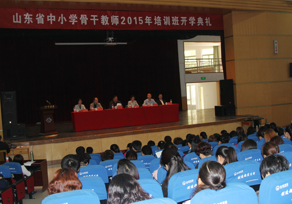 本站讯 10月12日,2015年全省中小学骨干教师培训班举行开学典礼。院长冯滨鲁出席典礼并讲话。潍坊市教育局以及我校教师教育学院、幼特教师范学院、教务处等部门负责人和全体学员参加了典礼。