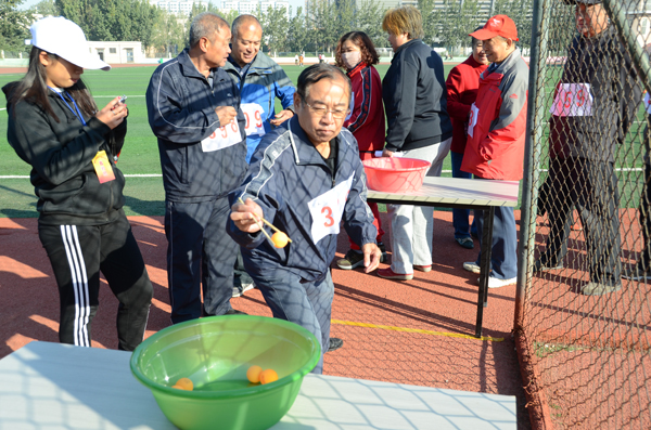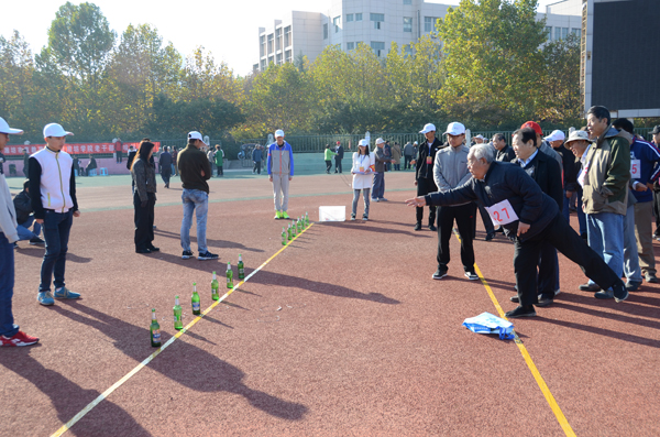 趣味运动会设置了直线滚球进门、定点投篮、乒乓球反弹入桶等比赛项目。离退休教职工们踊跃报名参加比赛,在运动场上一显身手,现场气氛热烈。数位80多岁的老职工更是老当益壮表现不俗,吸引了众人的目光。