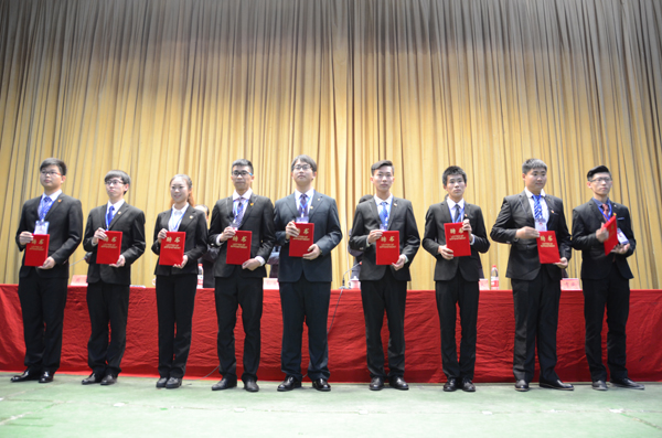 会上,团委书记周莹宣读了第十五届校学生会骨干成员名单,与会领导为第十四届校学生会优秀成员颁发了荣誉证书以及为第十五届校学生会代表颁发聘书。第十五届校学生会主席闫华作就职演讲,表示新一届学生会成员将秉持自我服务、自我管理、自我教育的工作理念,全心全意为同学服务。