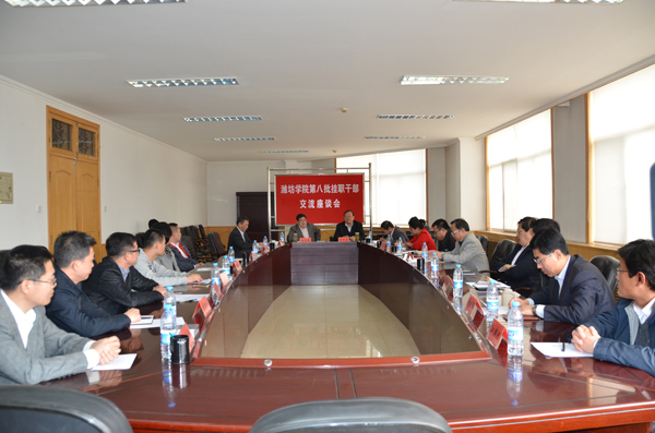 本网讯 4月8日,学校召开第八批挂职干部交流座谈会。党委书记孙文亮在听取挂职干部交流发言后指出,敢于担当、甘于奉献、年富力强的高素质人才和干部队伍是学校长远发展的可靠保证。挂职干部到机关和企事业单位进行锻炼非常有意义。他要求挂职干部认真总结、明确目标,注重学习、锻炼提高,架好桥梁、促进合作,严以律己、树立形象。校长冯滨鲁主持座谈会并对挂职工作提出要求。