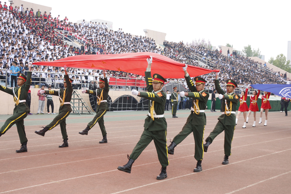 本网讯 4月27日,我校第十五届田径运动会隆重开幕。校领导孙文亮、冯滨鲁、王清明、丁子信、朱猷武出席开幕式。冯滨鲁致开幕词,王清明主持开幕式。各单位、各部门负责同志在主席台就坐。