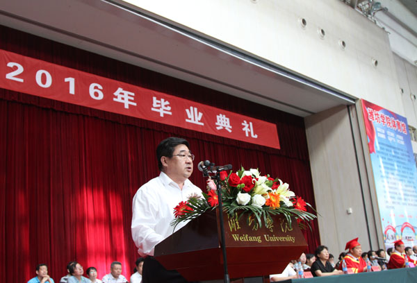 最后孙文亮寄语毕业生,铭记今天,因为人生虽漫长,大学却只四年,只有一次今天;忘记今天,因为人生也短暂,无限之精彩,永远在前方!今天你们是潍院的学生,明天你们将是潍院的校友。改变的只是身份,不变的是情感;母校之爱,师生之情,同窗之谊,一旦曾经拥有,必将天长地久!六月的骊歌已经唱响,分别的日子就在跟旁,校北门的52路车就要开了。同学们,把从容打进行装,把大气装入行囊,以勇者的姿态踏开涛浪,向阳光的彼岸扬帆远航!