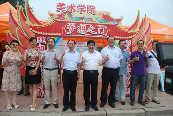 美术学院在迎新棚入口处搭建了以“彩色画笔绘梦想,理想之花绽青春”为主题的梦想之门,每位来美术学院报到的学生都要首先通过梦想之门,接受梦想之门的洗礼。他们在彩色卡纸上写下自己的梦想,点燃对大学生活的憧憬,在踏入大学的第一天就对自己的梦想进行思考,开启有目标、有理想的大学生活。同学们还在梦想之门的见证下与自己所写的梦想合影留念。