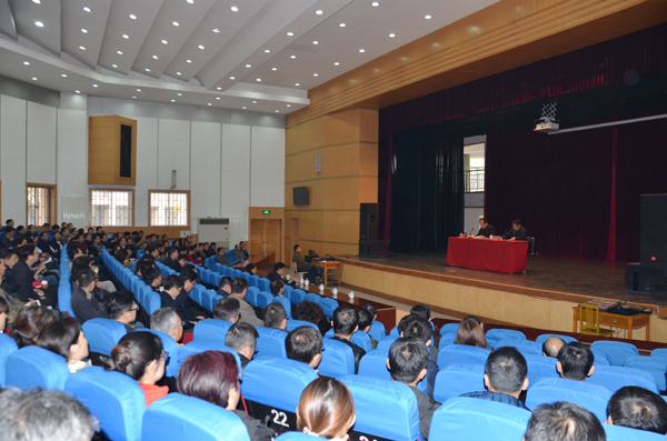 本网讯 11月5日,学校在闻韶楼报告厅举行十八届六中全会精神专题辅导报告会。山东省人民政府参事、教育部国家教育发展研究中心专家咨询委员、山东省委高校工委原副书记田建国,应邀作了题为《把坚定理想信念作为从严治党的首要任务》的辅导报告。党委书记孙文亮主持报告会,并对学校十八届六中全会精神的学习宣传和贯彻工作作出部署。学校领导王清明、马茜华出席报告会,全体处级、正科级党员干部聆听了报告。