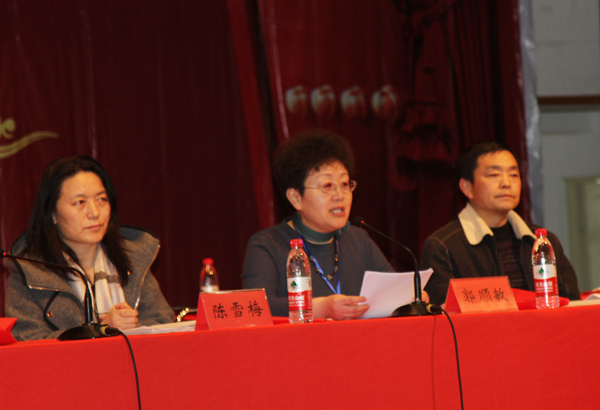 本网讯 12月26日,潍坊诗词学会成立大会在韶楼报告厅召开。山东诗词学会会长、原省政协副主席李殿魁,潍坊市委宣传部常务副部长丁汉邦,校长冯滨鲁到会祝贺并讲话。会议通过现场不记名投票选举产生了第一届理事会。文学与新闻传播学院党总支书记郭顺敏当选潍坊诗词学会第一任会长,李永明、赵爱军、窦在章、潘洪信当选副会长,赵红卫当选秘书长。