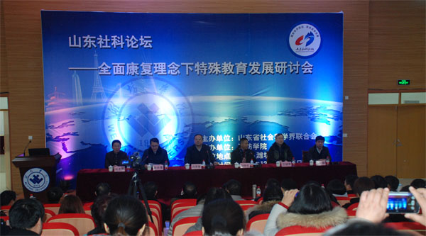 本网讯 山东社科论坛“全面康复理念下特殊教育发展研讨会” 12月24日至25日在学校特教幼教师范学院特教综合大楼会议室举行。本次论坛由山东省社科联主办,我校承办。校长冯滨鲁、北京联合大学教授刘全礼、陕西师范大学教授兰继军出席论坛开幕式。副校长赵光强主持开幕式。省社科联党组副书记、副主席周忠高出席论坛并发表讲话。