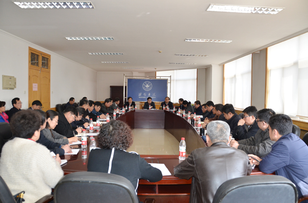 本网讯 3月10日,学校召开座谈会,就师资队伍建设工作征求意见建议,动员、部署相关工作。党委书记孙文亮在会上强调,要切实增强工作的紧迫感和使命感,立足实际,突出重点,明确责任,不断提升学校师资队伍整体水平。座谈会由校长冯滨鲁主持。副校长朱猷武在会上讲话。办公室、人事处、教务处、科研处负责人,各二级学院党政主要负责人参加了会议。