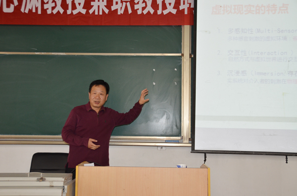 本网讯 4月13日,学校举行仪式,聘请中国传媒大学动画与数字艺术学院院长、博士生导师黄心渊教授为我校兼职教授。副校长王旭升向黄心渊颁发了聘书。仪式由传媒学院负责同志主持。仪式之后,黄心渊为传媒学院的部分师生作了题为《虚拟现实与人才培养》的学术报告会。