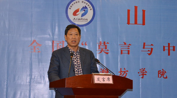 冯滨鲁在开幕式上代表学校向出席研讨会的专家表示欢迎,并简要介绍了学校的基本情况。他指出,早在2009年,莫言先生就受聘为潍坊学院兼职教授,并担任我校文学与新闻传播学院名誉院长。作为莫言故乡唯一一所综合类普通本科高校,潍坊学院在莫言研究方面拥有独特的优势,经过多年努力,打造了一支较为稳定的研究队伍,形成了浓郁的莫言作品研究氛围,产生了一批代表性研究成果。经过精心筹备,学校决定成立“莫言研究中心”。这将是我们开展莫言研究的新平台,期待通过这一平台展示大家的研究成果,进一步加强与全国各地莫言研究机构的交流与合作。