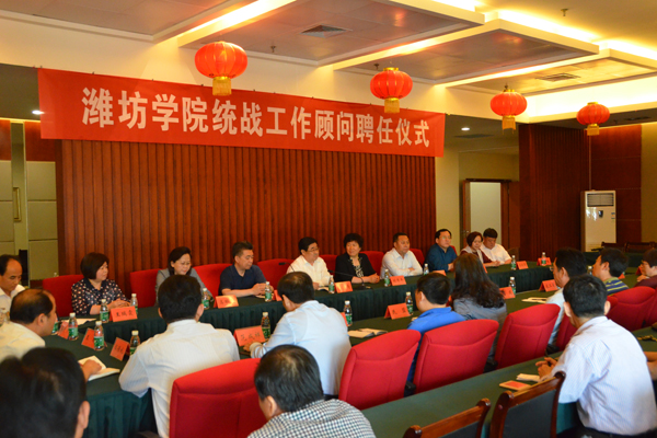 孙文亮在致辞中表示,学校党委聘任的10名统战工作顾问,来自全市党政机关、民主党派,以及企业、科技、文化、新闻等各行各业有突出贡献的各级人大代表或政协委员,是我市各行各业的精英、翘楚。聘任统战工作顾问,是学校党委一项创新性的工作,是借助社会力量做好统战工作的重要举措,也是引进社会力量办学的一次新的尝试,在全国高校尚属首创,具有很强的前瞻性,是统战工作的新亮点。希望大家抓住机遇,积极进取,在配合做好这项工作的同时,积极创新工作方法,促进教育教学改革,通过“学院-顾问-社会”之间行之有效、形式多样、丰富多彩的产学研社会实践活动的开展,真正实现潍坊学院办学层次的新提升、新跨越。