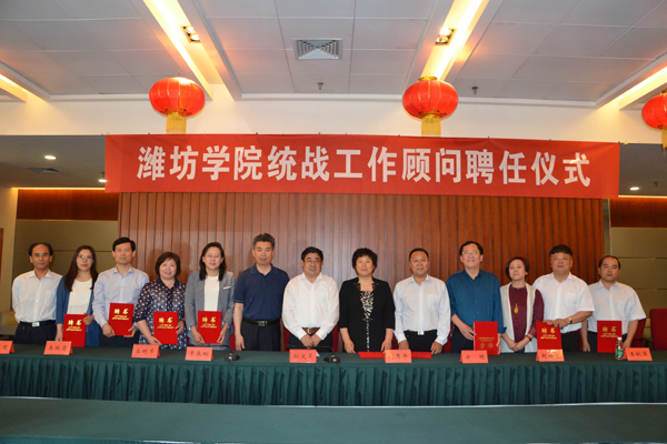 党委书记孙文亮在聘任会上致辞并为10名统战工作顾问颁发了聘书。潍坊市政协副主席、山东省政协委员、市政局调研员、民建市委主委刘秀平、潍坊市委统战部副部长于来刚、潍坊高新区党工委委员、党政办公室主任、潍坊市政协委员方国等出席会议。