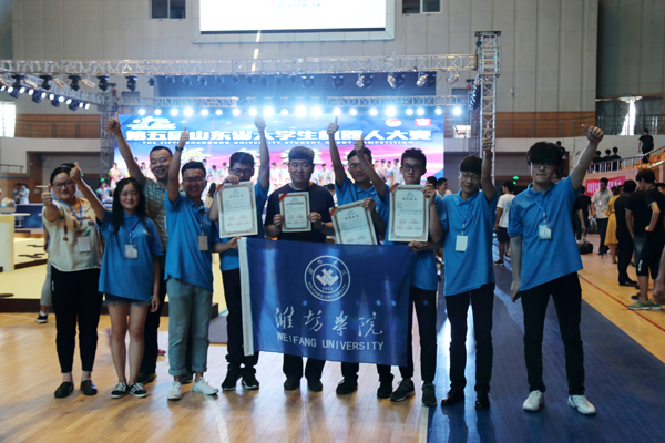 本网讯 5月27日至28日,第五届山东省大学生机器人大赛在孟子故里山东省邹城市举办。我校派出了3支代表队参加了机器人创意展示项目的比赛,经过激烈角逐,信息与控制工程学院庄泳等同学的《智能语音送餐机器人》获得一等奖,物理与光电工程学院杨筱等同学的《三角结构运输机器人》获得二等奖,机电与车辆工程学院庄亚童等同学的《绿化修剪无人机》获得三等奖。信息与控制工程学院程志强老师获得“最佳指导老师”奖。