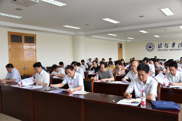 本网讯 6月28日上午,校学术委员会召开全体会议,对“潍院学者”特聘教授、“杰青”“优青”支持计划人选进行了评审,校学术委员会主任委员冯滨鲁教授主持会议。