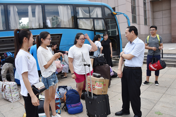 本网讯 7月7日,我校分赴安丘市和临朐县参加实习支教的482名学生,圆满完成实习支教任务,顺利返校。副校长丁子信,教务处、相关学院负责同志以及辅导员老师们,在行政楼后广场迎接返校的学生们。
