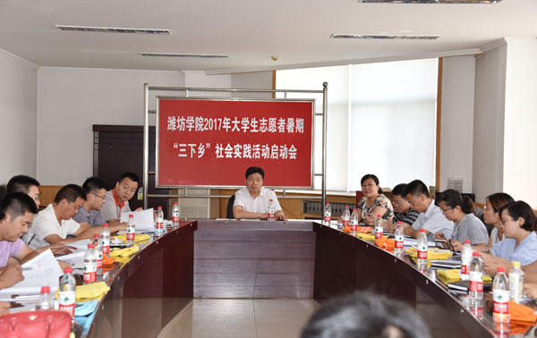 本网讯 7月12日,学校召开大学生志愿者暑期“三下乡”社会实践活动启动会。副校长王清明主持会议并讲话。团委负责同志对具体工作做了安排部署,团委全体人员和各学院书院团总支书记、副书记参加了会议。