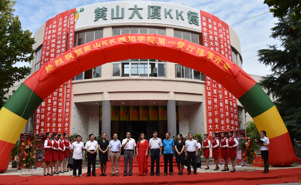 8月27日上午9点58分,学校新改建完成的第一餐厅即潍坊学院黄山大厦KK餐厅隆重开业。副校长王旭升宣布餐厅开业,合肥黄山大厦kk管理有限公司总经理王敏致辞,办公室、总务处有关负责同志、黄山大厦kk管理有限公司相关负责人出席开业典礼。