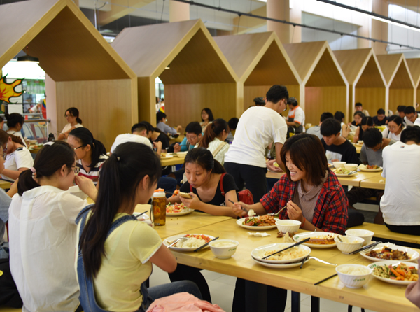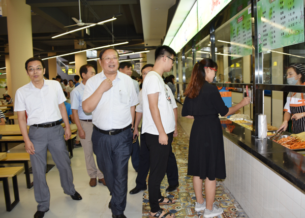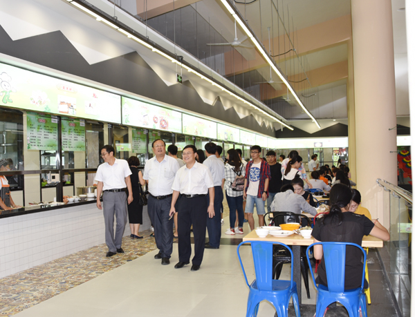 冯滨鲁一行听取了餐厅有关负责同志情况介绍,分别到餐厅的一楼、二楼各个售卖窗口,查看就餐环境、饭菜的质量品种,了解饭菜的价格,并与就餐学生交流,征求学生对餐厅工作意见。冯滨鲁一行还在餐厅体验就餐。