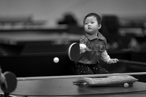 张松的作品《娃娃的乒乓梦》,用组照的形式、抓拍的方法,淋漓尽致地展现了一个不到3岁孩子的顽皮随性,为了一点不愉快哭鼻子,天真无邪的在大人怀里撒娇,日复一日艰苦训练的场景。作品展示了乒乓球运动的巨大魅力,以及积极拼搏、奋勇向上、永争第一的体育精神。