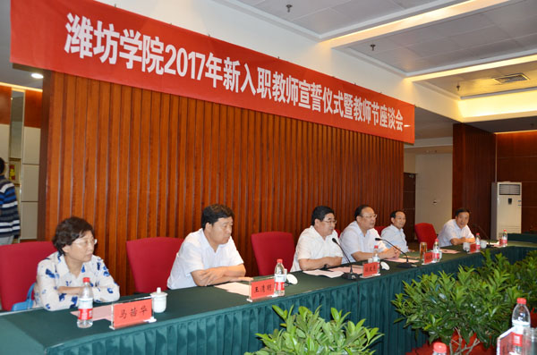 本网讯 在第33个教师节到来前夕,9月7日,学校召开庆祝2017年教师节座谈会。近20名新进教师庄严宣誓入职。党委书记孙文亮要求他们珍惜当下机会、做好人生规划,利用良好环境、实现人生价值,切实履行承诺、做好本职工作。校长冯滨鲁介绍了学校的历史和概况。