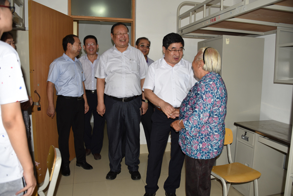 迎新当天,在相关部门负责同志的陪同下,学校领导孙文亮、冯滨鲁、丁子信先后到各学校室内报到处、室外迎新处、弘德书院、安顺校区,详细了解各二级学院、有关部门迎新工作情况,并要求他们将迎新工作做得更扎实细致、方便快捷、高效有序,充分展示学校的办学形象和品牌。