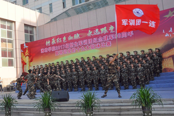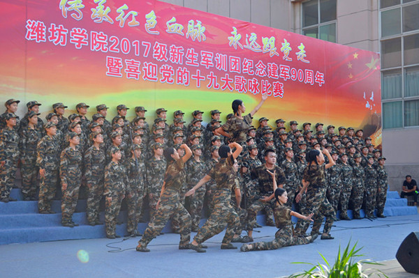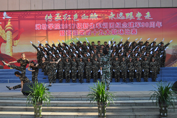 四营二十连演唱《爱我中华》拉开了新生军训团合唱比赛的序幕。《保卫黄河》《强军战歌》《我们走在大路上》《走向复兴》等一首首经典曲目,各比赛团队都加入了更多的创意,展现出了不同的风格。一首首耳熟能详的歌曲,充分展示青年学生爱党、爱国、爱军的情怀和蓬勃向上的精神风貌,唱出了潍院学子满腔的爱国热情,永远跟党走的坚定理想信念。