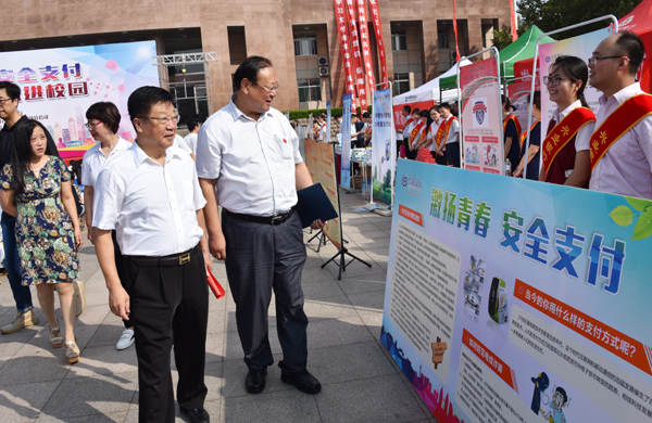 本网讯 9月24日,由人民银行潍坊市中心支行主办的潍坊市金融系统“激扬青春安全支付”支付结算知识现场宣传活动在我校举办。学校党委副书记、校长冯滨鲁在启动仪式上致辞,人民银行潍坊市中心支行党委书记、行长刘福毅作讲话。人民银行潍坊市中心支行党委委员、工会主任王曙平,潍坊市各银行业金融机构和支付机构潍坊分公司主要负责同志出席启动仪式。