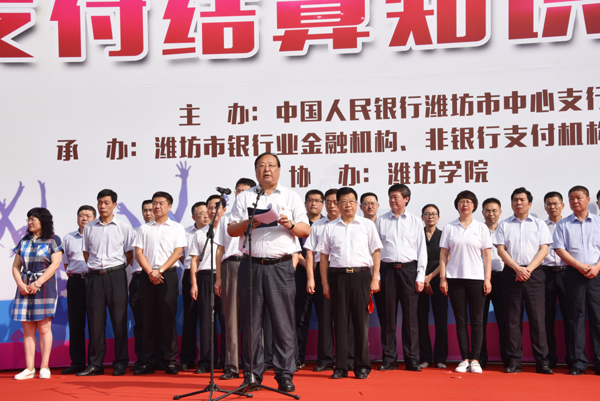 冯滨鲁在致辞中介绍了学校近几年在教学、科研、人才队伍建设等情况。他指出,学校坚持以服务地方经济社会发展为己任,主动对接“蓝黄”国家发展战略,积极推进产学研结合,深入开展服务潍坊行动,为地方经济社会发展做出了积极贡献;也为潍坊金融系统输送了大批优秀学生,成为潍坊市金融系统的顶梁柱和建设者。“支付普惠民生,支付护航发展”。飞速发展的“支付”让我们的支付生活踏上了“高速路”,悄然改变着我们每个人的生活方式。这次现场宣传活动的举行,为我们提供了一次近距离学习支付结算知识和接受支付结算教育的好机会,对提高信息安全保护和支付风险识别能力大有益处。