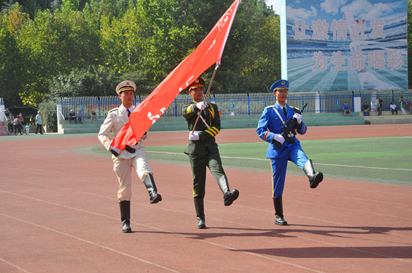 升国旗仪式后,首先汇报的是“分列式”,2017级新生军训方队依次迈着整齐的步伐通过主席台。之后,他们进行了正规化养成动作、内务整理——叠被子、单队列动作表演及军体拳等表演。