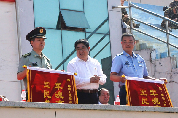 党委书记孙文亮同志向承训部队赠送锦旗。