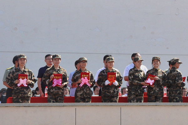 军训汇报表演结束后,军训团政委李学军宣读了表彰决定。与会领导为获奖集体和个人颁奖。