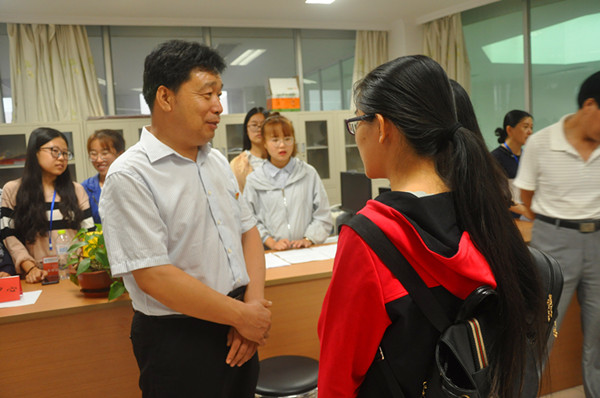 本网讯 9月26日,我校2017-2018学年勤工助学岗位招聘会在大学生事务中心如期举行,副校长王清明亲临现场,了解各单位用工情况,并与学生亲切交流,解答学生疑问。
