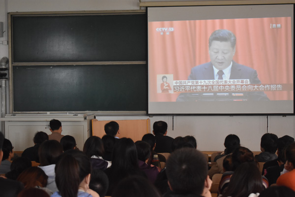 本网讯 10月18日上午9时,举世瞩目的中国共产党第十九次全国代表大会在北京人民大会堂隆重开幕。习近平同志代表十八届中央委员会向十九大作报告。我校广大师生员工对党的十九大密切关注,纷纷通过电视、互联网、广播等媒体收听收看十九大开幕式盛况。
