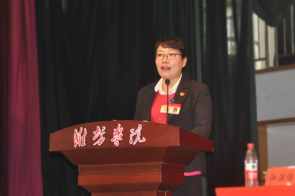 学校团委书记张晓静作了题为《不忘初心跟党走,立德树人谱华章——为建设综合类应用型大学贡献青春力量》的工作报告。校学生会主席赵浩然作了题为《服务同学成长成才,奋力推进改革攻坚——在实现“潍院梦”的征程上汇聚磅礴青春正能量》的工作报告。