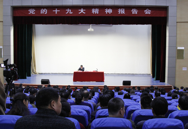 本网讯 11月14日,学校举行学习党的十九大精神报告会,党委书记孙文亮作专题辅导报告,强调要牢固树立“四个意识”、坚定“四个自信”,落实习近平总书记学懂、弄通、做实的要求,推动党的十九大精神在学校落地生根、开花结果。学校领导马茜华、赵光强、王旭升出席报告会。报告会由副校长王清明主持。