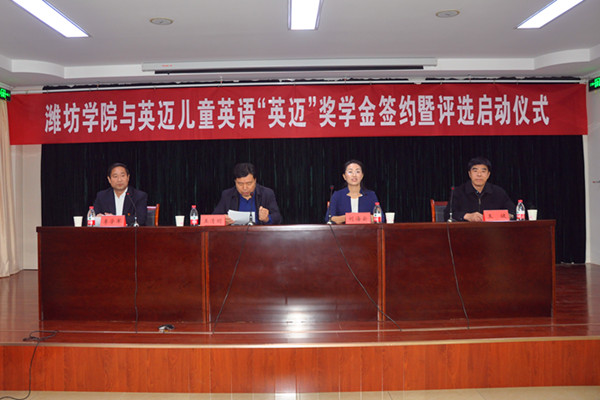 本网讯 11月16日,“潍坊学院与英迈儿童英语‘英迈’奖学金签约暨评选启动仪式”在行政楼705会议室举行。副校长王清明,英迈儿童英语创始人刘海云女士,学生工作处和外国语学院的负责人出席了启动仪式。