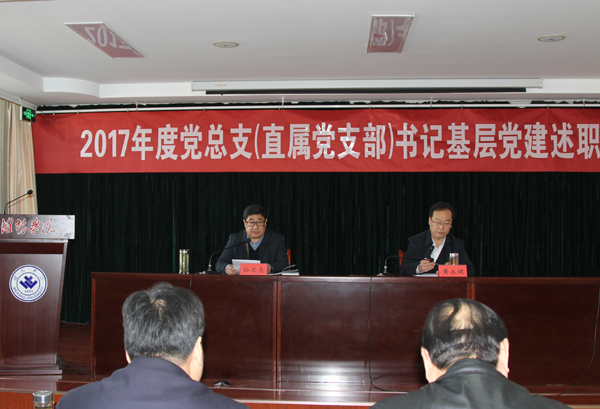 按照省、市委组织部和省委教育工委的要求,从2016年开始,学校开展了党总支(直属党支部)书记基层党建述职评议工作,述职评议考核采取书面与现场相结合的方式进行。会上,9位党总支(直属党支部)书记分别对照“第一责任人”职责,在总结党建工作成绩的同时,深入查找存在的问题,深刻剖析问题原因,提出整改的方向和措施。孙文亮根据述职情况和平时了解掌握的情况逐一进行了点评,既指出成绩、寄予希望,又点出不足、提出要求。