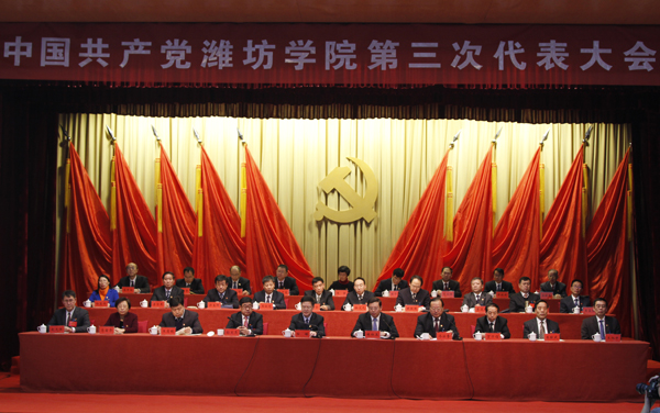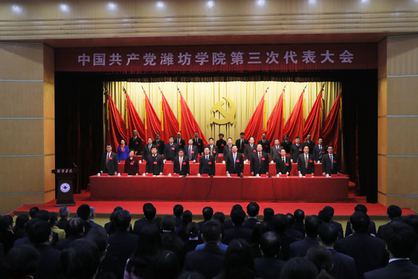 中国共产党潍坊学院第三次代表大会在齐声奏唱《国歌》声中拉开帷幕。