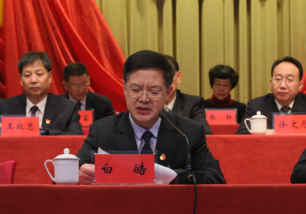 白皓在讲话中,代表省委教育工委向大会召开表示热烈祝贺。他充分肯定了学校第二次党代会以来取得的发展成就,并指出,潍坊学院主动适应高等教育发展形势和地方经济社会发展需求,积极推进内涵发展、特色发展、创新发展和开放发展,在建设高水平应用型大学征程上迈出了坚实步伐、取得了可喜成绩,为我省经济社会发展作出了积极贡献。他强调,开好潍坊学院第三次党代会具有十分重要意义。他希望各位代表,从学校改革发展大局出发,切实把参加党代会的过程作为增强党性观念、凝聚力量的过程,认真按照党章要求和民主集中制原则,严格履行代表义务,正确行使民主权利,充分发挥主人翁精神,献计献策、共谋发展,圆满完成大会各项任务。
