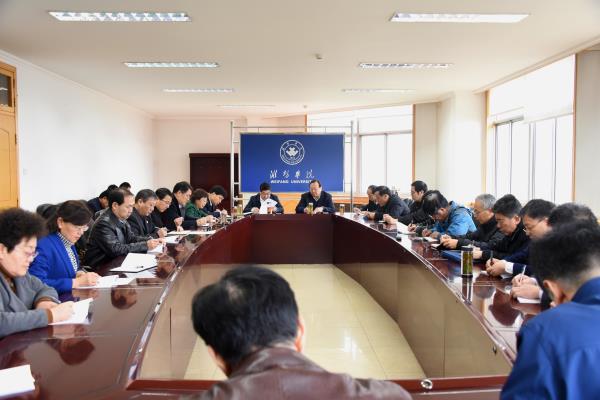 本网讯 3月15日,学校党委理论学习中心组(扩大)举行集体学习会。党委书记孙文亮主持会议并讲话。党委副书记、校长冯滨鲁,党委副书记王清明,党委委员丁子信、马茜华、朱猷武、赵光强、王旭升出席会议。