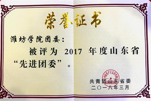本网讯 日前,共青团山东省委对2017年度山东省共青团工作先进集体和个人进行表彰,我校团委再次荣获2017年度山东省“先进团委”荣誉称号。