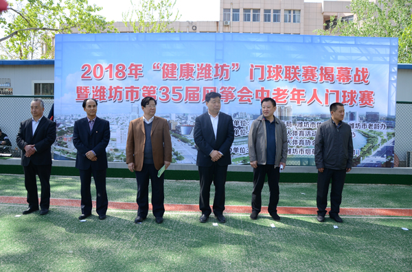 本网讯 4月11日-13日,2018年“健康潍坊”门球联赛暨潍坊市第35届风筝会中老年门球赛在我校门球场举行。校党委副书记王清明、市体育局局长孙沂出席赛事开幕式。来自全市各县市区及市直系统共23支老年门球代表队约170余名老年运动员参加了本次比赛。