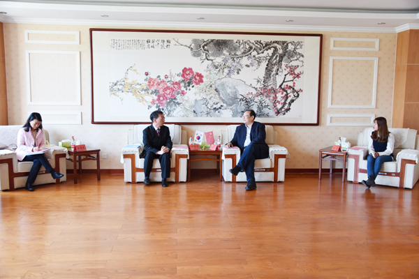 本网讯 4月24日,韩国岭南大学国际学部部长朴宰宏一行4人对我校进行友好访问,校长冯滨鲁会见了客人。国际交流合作处负责人参加了会见。