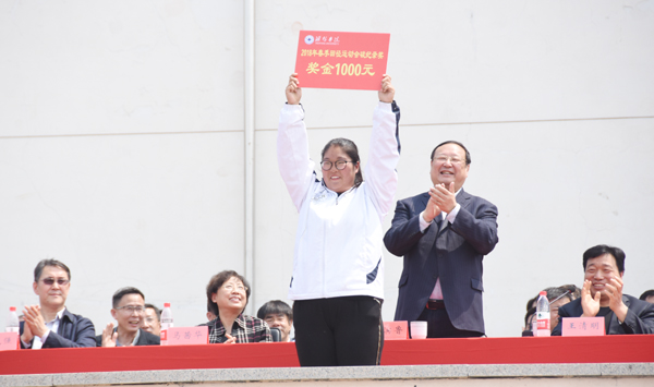 本网讯 骄阳似火,胜利的笙歌奏响。4月28日上午11时,历时两天半的我校第十七届运动会,圆满完成各项赛事,胜利闭幕。学校领导冯滨鲁、王清明、马茜华、朱猷武、赵光强出席闭幕式并为获奖代表队颁奖。闭幕式由党委副书记王清明主持,副校长赵光强致闭幕词。