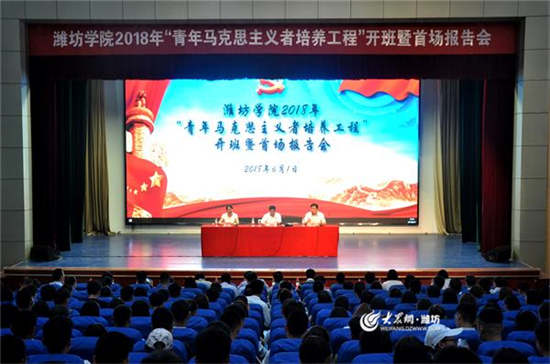 (通讯员 张宁)6月1日,潍坊学院2018年“青年马克思主义者培训工程”开班暨首场报告会在图书馆报告厅举行。潍坊学院党委书记孙文亮作了题为《学习新思想 担当新任务 开创新局面》的报告。潍坊学院党委副书记王清明出席开班仪式。潍坊学院团委全体成员和各二级学院分管学生工作负责人、团总支书记(副书记),全体参训学员聆听了报告。