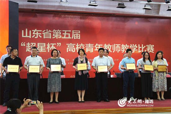 [提要]6月1日至6月4日,山东省第五届超星杯高校青年教师教学比赛决赛在山东理工大学举行,潍坊学院喜获5个一等奖,2个二等奖、2个三等奖。一等奖总数、参加获奖总数均居全省之首。其中,潍坊学院传媒学院的陈思雨老师取得本科文科组一等奖第一名的优异成绩,获得参加颁奖典礼的现场展示活动的殊荣,并获得参加代表山东省参加教育部青年教师教学比赛的遴选资格,实现了潍坊学院在这一赛事上的突破。