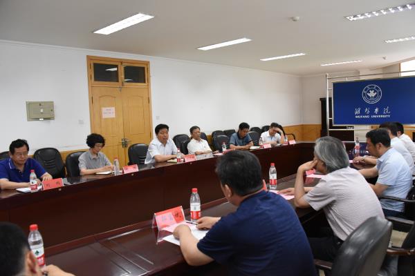 本网讯 6月6日,潍坊市委统战部副部长、市工商联党组书记胡立一行6人来学校调研,学校党委副书记王清明出席并组织座谈。党委组织部、统战部负责同志,经济管理学院及潍坊民营经济发展研究中心负责人参加会议。